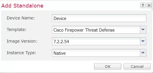 This will bring up a pop up window where we define the template to build the virtual FTD, including the software version. It is strongly recommended that a software version 7.2+ is used for CDO onboarding. We are creating a ‘native’ device which will use the entire resources of the chassis. You can choose to create a ‘container’ instance if you would like to create more than one FTD.