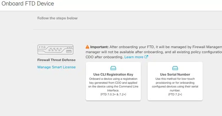 We will use the CLI registration key to onboard the FTD.
