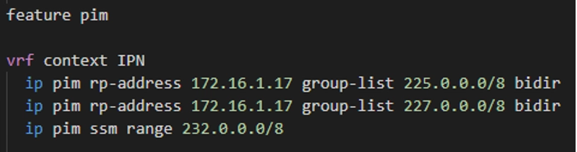 This is a key component of the IPN and enables the underlying multicast PIM communication between the PODs, in the ACI IPN a Bidirectional Phantom RP must be in use. This was the next step in our configuration and the most problematic. Bidir PIM for Broadcast, Unknown Unicast and Multicast (BUM) traffic between PODs must be configured or there will be no Inter-pod communication.