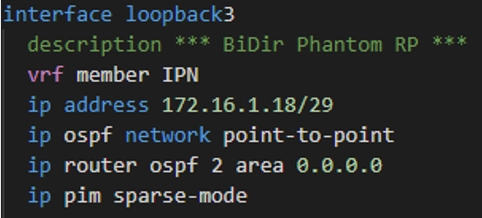 In our configuration the active RP shall be POD1-SW01. If POD1-SW01 goes down or Lo3 subnet becomes unreachable via the IGP then POD2-SW01 will take over as this is the next most specific route, after this POD1-SW02 and finally POD2-SW02. I shall cover confirmation of the Bidir Phantom PIM configuration once the Multi-Pod is in place.