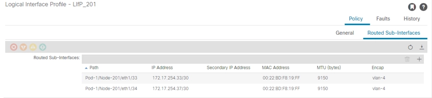 Traffic originated from the Spines will always be tagged 802.1Q VLAN 4 this is so ACI knows that traffic is from a Spine. Therefore, IPN interfaces facing the Spines must allow traffic encapsulated with VLAN 4. Multiple Layer 3 sub-interfaces tagged with the same VLAN must be allowed on the IPN devices. Here we used the minimum recommended ACI MTU of 9150.