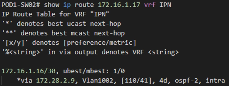 We have now confirmed that the OSPF neighbours are up between the ACI and the IPN. If at this point, we are not